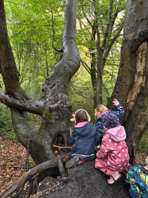 Wahrscheinlich hat er sich reingeschlichen, als die Kinder im Forscherparadies einen kurzen Zeichentrickfilm geguckt haben...?