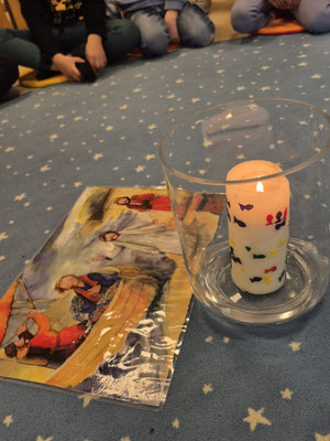 Heute ging es um die Geschichte als Jesus nach Judäa kam und die Erwachsenen nicht wollten, dass die Kinder zu ihm gingen.