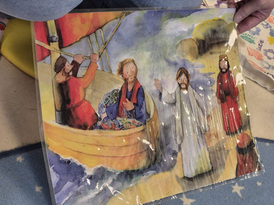 Sie hat den Kindern die Geschichte erzählt, wie Jesus seine ersten Freunde gefunden hat.